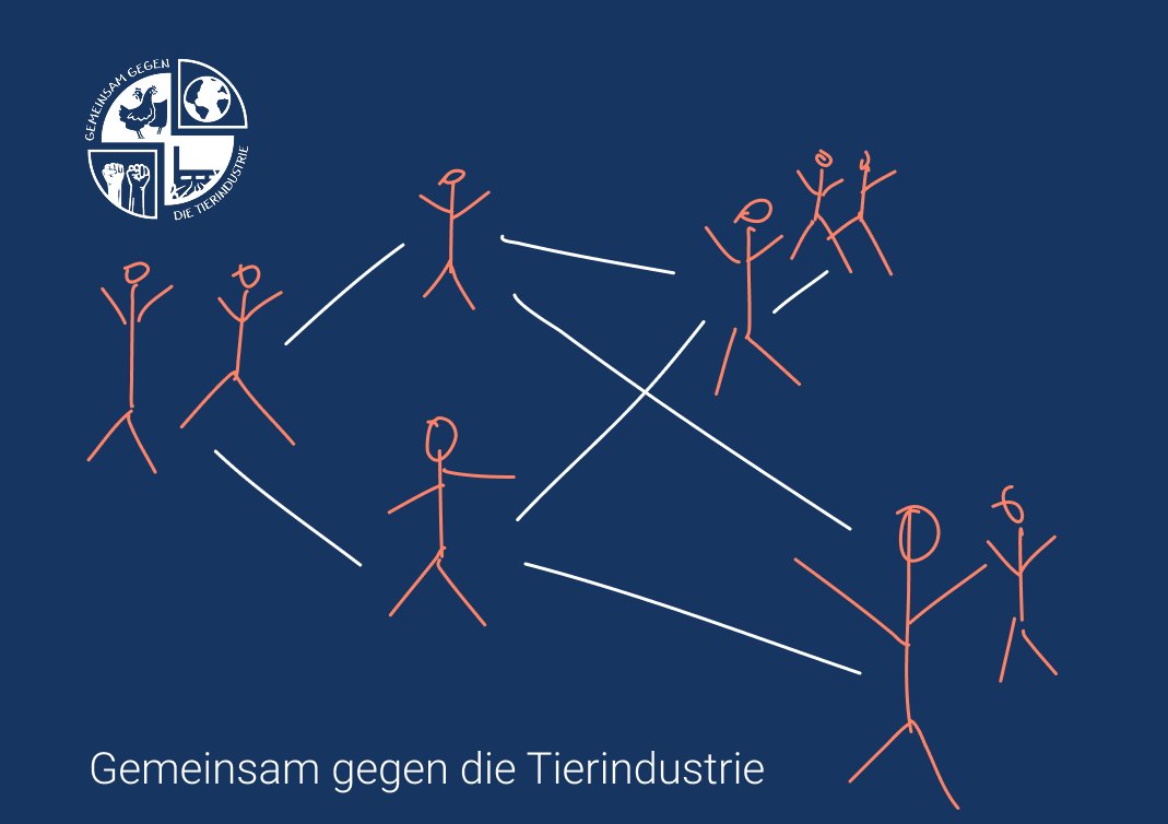 Wir, das Bündnis „Gemeinsam gegen die Tierindustrie“, sind ein bewegungsübergreifendes, überregionales Aktionsbündnis. Gemeinsam fordern wir die Abschaffung der Tierindustrie. Wir sind der Überzeugung, dass wir selbst aktiv werden müssen, um einen gesellschaftlichen Veränderungsprozess voranzutreiben, da die Konzerne und die Regierungen nicht die aus unserer Sicht erforderlichen Maßnahmen ergreifen werden. Wir brauchen eine Agrarwende hin zu einer solidarischen und ökologischen Produktions- und Organisationsweise, die nicht auf Kosten anderer erfolgt und nicht am Gewinn orientiert ist.